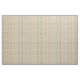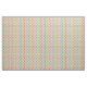 Denna väv har ett modernt mönster i mitten av århundradet med ovala halvor, en del fasta och en del stripade, på en vit fält.
