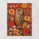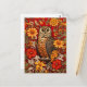 Stripe Uggla och Zinnia Flowers Vykort