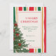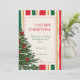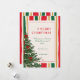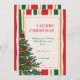Celebrate the holidays with this elegant striped Christmas card featuring vertical red, green, yellow, and cream lines, and a festive Christmas tree adorned with red bows. A perfect blend of classic color and cheerful holiday design.