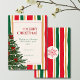 Striped Christmas Card with Pine Tree and Red Bows Julkort