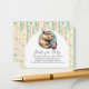 This pastel striped books for baby card features a funny capybara with bubble tea on a colorful dotted stripe background. The cheerful design makes it a perfect personalized baby shower insert.