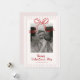 A charming Valentine’s Day photo card featuring soft blush stripes and a playful hand-drawn red bow above your picture. The clean layout and sweet, whimsical details make it perfect for sharing a favorite family photo, kids’ snapshot, or couple’s moment in a warm and festive way. Simple, cheerful, and easy to personalize for anyone you love.