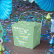 Dinosaurier med grönt och blå stripy-tecknad på söta Barn med anpassade Födelsedagsfester.