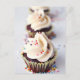Ett modernt fotografi av tre cupcakes i rad. Varje chokladcupcake har läcker vaniljgrädde och regnbågsglitter.