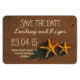 Söta stjärnfiskparet på stranden, spara datum magneter för bröllop på stranden.