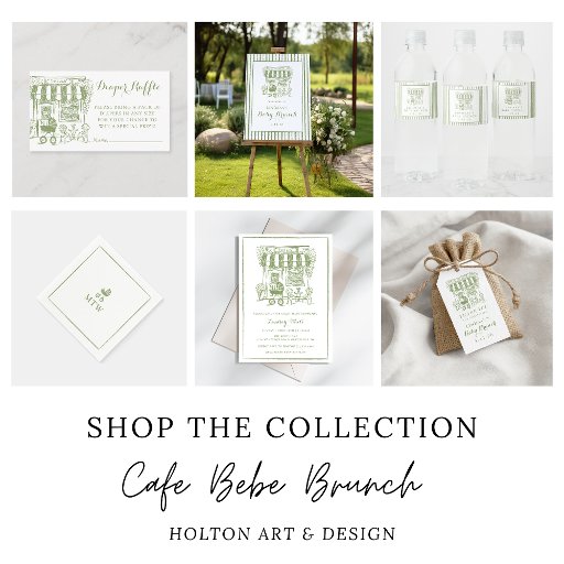 Hand drawn baby stroller illustration with classic monogram text. Coordinates with the "Cafe Bebe Baby Brunch" collection.
