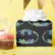 Kolla in den här elektriska Batman-symbolen med grönt och blåraster.