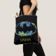Kolla in den här elektriska Batman-symbolen med grönt och blåraster.