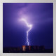 Se ett ögonblick av ren och oförfalskad kraft i det här lodrät. En stor, lysande blixtbolt kommer från himlen och verkar rikta sig till ett enda byggnad i staden nedanför. Hela scenen är torkad i en moody, elektrisk palett med djup indigo och pulserande lila, där stormens råenergi framhävs. Detta är naturens yttersta kraftsprång, ett dramatiskt och välinspirerande spektakel som fryser en delad sekund råenergi i tid.
