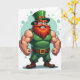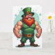 This design shows a muscular leprechaun centered in the frame, standing tall in an emerald outfit that catches the light 💚. He wears a high green top hat with a brown band and a gold buckle, plus a sleeveless vest and fitted trousers that show off his broad shoulders and arms. His orange-red beard and thick eyebrows frame a face set in a tight, determined grimace, with clenched teeth and narrowed eyes aimed straight ahead. The clenched fists and squared stance read like someone ready to step in for a friend, the kind of fierce loyalty that feels almost romantic in its intensity ☘️. Soft highlights glide across his skin and clothing, tracing every muscle and fold to add depth and shine. Any text sits near the top in light gold lettering, spaced wide so it doesn’t compete with the figure. Behind him, a teal, cloud-like haze with pale bubble shapes drifts across the background, keeping the focus on the green and fiery beard.