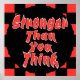 This bold typographic design delivers a powerful message of confidence and self-belief with the quote “Stronger Than You Think.” Set against a striking red-and-black checkered background, the energetic lettering stands out with a raw, expressive style that grabs attention instantly. The dark central shape creates contrast, making the message feel grounded and intense, while the vibrant colors add motivation and strength. Perfect for those who need a daily reminder of their inner resilience, this design speaks to courage, determination, and pushing beyond self-doubt.