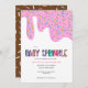 Söta Rosa Frosting Dropp Baby Strössel Inbjudningar med en choklad och strössel på baksidan.
