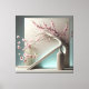 Eine moderne Komposition aus floraler Leichtigkeit und grafischer Präzision: Weiße und gelbe Blüten entfalten sich in einer matten grünen Schale, begleitet von feinen Knospen und einem dynamischen Linienband aus schwarzen Fäden. Der Hintergrund aus vertikalen und horizontalen Mustern schafft eine klare räumliche Ordnung. Die Szene bleibt ruhig, strukturiert und atmosphärisch – ideal für Räume mit Sinn für Design und Balance.
