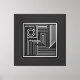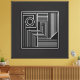 A striking geometric artwork combining concentric circular forms with angular and parallel line structures. The precise white detailing on deep black creates depth and balance, making this piece a bold modern statement within the Filigran in Black Collection.