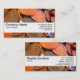 En visitkortsmall med en attraktiv fotobakgrund (som också kan ändras). Information om ett vitt band. Företagsuppgifter och adress på framsidan med namn och andra kontaktuppgifter på baksidan. Redot som ska anpassas med din information.