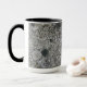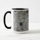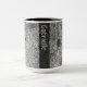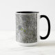 Det delikat fotoet av grå granitstenstruktur med dekorativ moss specificerar. Fotoet täcker ha som huvudämnedelen av denna mugg. Motsats av handtaget, finns det ett semitransparent lodrätnamnbaner. Banret är svart, och text är den ljusa - gråna för att tända - bruntet.