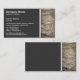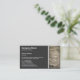 En mall för visitkort som dekoreras med ett foto eller en bild struktur på högerna och stort område i ett komplementärt färg på den lämnat sidan med en vit gräns-linje som delar de två områdena. Redot som ska anpassas med din information. Kortets baksida har samma dekorativa layout men textområdet har lämnats tomt. Detta kan lämnas som använda som ett praktiskt område för anteckningar osv. eller anpassas med ytterligare text. Dekorationerna kan också rensas eller ersättas. Du kan också lägga till ytterligare grafik, t.ex. en logotyp.