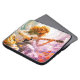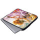 A decorative laptop bag with a somber picture of a young girl strumming her guitar, under a stormy sky.