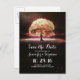 Rustik rosa korall bröllop spara datum kort med romantisk gammal ek och drömmig strykglödlampor design. Vackra vintage men moderna spara datum kort för naturinspirerade bröllop.
