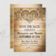Rustiskt trähjärta sparar datumkorten med hjärtkarvar från kärlek och typografi från land stil.