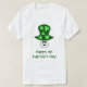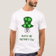 En gullig champinjon med shamrockfläckar. Nedanfört är meddelandet "lyckliga Stets Patrick dag" i grön text.
