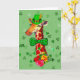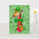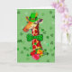 Fira Sts Patrick dag med en giraff som all ut prydas för partyn för St.-paddy'sdag med hans gröna hatt, bowtie, ro och klöver. Stativ ut från folkmassorna i krogen och puben.