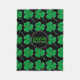 Lycklig irländsk shamrocksfilt för henne på Sts Patrick mönster för klöver för shamrocks för daggrönt på svart bakgrund. Mittet har svart att cirkla med IRLÄNDSKA för huvudstadgrönt för PRINCESSEN brev med skuggar sammanlagt verkställer. Gullig filt för den barnkammare- eller flicka rum- eller baby showergåvan för saint patrickflicka. Eller dekor för hem för St.-paddy'sdag för irländska divas.