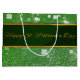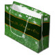 Elegant och lyxig Sts Patrick dagillustration som presenterar ett band med hälsning på en grön glitter- och shamrockbokehbakgrund med sparkling ljusa stjärnor.