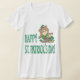Iklädd grönt för gullig nalle som ett irländskt trollanseende vid hans kruka av guld och lyckliga Sts Patrick dag i grön text.