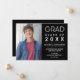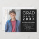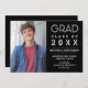 Skicka din familj och dina vänner den här moderna personligens fotografi till studenten-högskolan för pojkar eller flickor. Den här elegantens malldesign innehåller ett foto som du kan ändra till eget på den lämnat sidan. För högerna på en svart bakgrund står det "Grad, klass 20XX" med ditt namn, skola, datum och framtida planer i faux silver typography. Kortets baksida är svart. Designad av konstnären ©Susan Coffey.