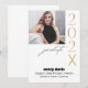 Modern enkel vit bakgrund med studenten-anslagskort för foto och guld - lägg bara till ditt foto, årets sista siffra, namn och skolinformation.