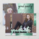 Cute, roligt 2-fotomallen vågrät studenten överlägg med accenter på en lekfull myntskiva och grönt och svart palett. På framsidan finns en chic-handskriven penselmanusskrift "student"-typografi och bild tillsammans med gradens namn och studenten. Baksidan är andra bild och detaljerna kring party. #gradpart #bundet #graderingspart #classof2019