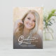 Ett modernt skript med två foton Studenten-meddelande. Ett storlekt foto på framsidan med vit textövertäckning och ett foto på baksidan med valfri information.
