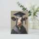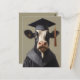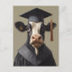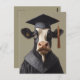 Lungt men allvarligt porträtt från en ko med en studenten hatt akademiskt tak