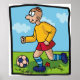 En fotbollsspelare som sparkar runt boll. Den här designen ser ut att vara verkligen på dessa Poster