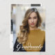 Student är skrivet med ett enkelt, vitt skript över ditt äldre porträtt-foto för ett modernt studenten-annonskort. Anpassa till 2025 års klass i gymnasiet eller universiteten under den kursiva typografin och lägg till dina personuppgifter på baksidan av denna contemporary, minimalistiska tillkännagivande för studenten.