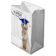 Golden-hämtare med blå studentmössa och guld-tassel. Bakgrunden till färg kan ändras. Text kan redigeras.