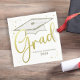 Den här designen har ett modernt enkelt party i student grad, med en studentmössa pantarboard guld, för high school eller college-hög, med anpassningsbar personlig namn-klass, ett trendig-snyggt-manigrafi-skript, en grad party papper cocktail napkin, studenten grad party förråd, ett enkelt minimalistiskt guld konetti party, en förenklad contemporary modern utformning, en grad studenten midsernapkin napkin napkin