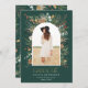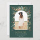 Student grönt, vattenfärgstorkad botanisk blommigt i elegant, muterade färg helgdag arch 1-fotoannonseringskort. Guld utövar modern typografi.