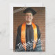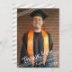 Tre tunna vita diagonala linjer accentuerar den handskrivna titeln TACK, student-fotot, namn och graderingsår. På baksidan finns ett muterat grått och vitt strimlat mönster med ett ställe som du kan använda för att lägga till ett förtryckt allmänt tackmeddelande, eller så kan du ta bort exempeltexten för att lämna den tom för handskrivna personliga meddelanden eller erbjuda student en del av dem. PHOTO TIP: För snabbaste/bästa resultat väljer du ett foto med subjekt i mitten och/eller före skörd till en liknande form som den som visas före uppladdningen och fyller i fotoutrymmet perfekt. Kontakta designer om du vill att designen ska ändras, på en annan produkt eller om du vill samordna produkter för din party-sensemble.