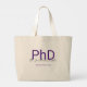 En stor PhD-väska som innehåller PhD:s namn och fält i studien. Den totala väskan innehåller namn i ett handskriftsteckensnitt och en lila och svart design. Lägg bara till PhD:s information, lägg till det här objektet i din kundvagn och njut av väskan. Student Lila Gradergrad Namn PhD Large Tote Bag Holiday Design | ©Melissa Patton - Designer