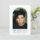 Tillkännagivandekort för studenten med bågformat foto ram . "Student" visas i modern typografi med student och gradår som visas nedan. Baksidan av inbjudan innehåller information om studenten.