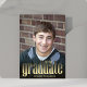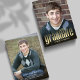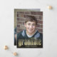 Den här designen innehåller ett tillkännagivande från student, med en modern minimalistisk, två fotomallar, perfekt för högskola eller högskola, med svart och guld, trendig, fet stil och enkel, snyggt, studenten