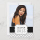 Roligt, enkel klass av 2013 års meddelande och student-partsinbjudningskort. En elegant med svart linje, grått och vitt chevron mönster, en etikett med texten"klass 2013" och graderfoto. perfekten till inbjudan till din dotters studentfest. Utformning av Elke Clarke©.