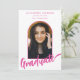 Fira din dotters högskola, universiteten eller high school studenten med detta pulserande shock rosa Boho-inspirerade student-fotoarch studenten-annonskort. Den här designen har en livlig kalligrafi för shock rosa-skript och en fotomall för shock rosa Arch student, och fångar upphetsningen av nya början och glatta firande. Anpassa den med ett omhuldat foto av student med hjälp av den lättåtkomliga fotomallen och markera händelseinformation i bedövande typografi. Designad av konstnären Catherine Sweetman, kombinerar denna unika inbjudan på ett utmärkt sätt naturens charm med hur glad din dotters prestation är, skapar den det idealiska sättet att samla nära och kära och markera denna speciella milstolpe.