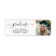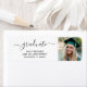 En enkel returadressetikett för studenten med ett minimalistiskt stil med ditt favoritfoto av graden tillsammans med "student" i ett handskrivet elegant med svarta utslag över en vit bakgrund. Denna moderna returadressetikett är en perfekt för en flicka i high school student och är ett underbart sätt att spränga kuverten för tillkännagivande för studenten.