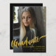 Fira din dotters högskola, universiteten eller high school studenten med detta fantastiska minimalistiska snyggt guld och svarta student-fotokort för studenten. Den här designen innehåller kalligrafi och fotomall för skript i elegant guld och student. Den fångar upphetsningen av nya början och glatta firande. Anpassa den med ett omhuldat foto av student med hjälp av den lättåtkomliga fotomallen och markera händelseinformation i bedövande typografi. Designad av konstnären Catherine Sweetman kombinerar denna unika inbjudan på ett vackert sätt elegans med hur glad din dotters prestation är, skapar den det idealiska sättet att samla älskade och markera denna speciella milstolpe.