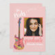 Fira din dotters fantastiska högskoleexamen med en roligt rosa guitar-musikinbjudan med student-fotomall, med ett fet färgstarkt psykodeliskt rosa guitar och snyggt rosa och vitt skript. Denna roligt för öga-fångst spricker med kraftfulla av rosa och accentueras med elegantens rosa och vit kalligrafi och musik noter som på ett perfekt sätt fångar upp tillfälle. Perfekt för college universiteten student, men också för high school studenten, firar detta kort sin prestation i ett modernt, boho-inspirerat stil. På framsidan visas din dotters detaljer om namn och studenten i vitt fet contemporary, typografi, medan baksidan ger utrymme för ytterligare händelseinformation. Med den lättförståeliga fotomallen kan du lägga till ett omhuldat foto av student, skapar det som en personlig och minnesvärd keepy samt en inbjudan till studentfest. Designat med originalkonstverket av konstnären Catherine Sweetman, är detta kort en perfekt blandning av fet färg, konstnärligt flust och modern elegans, skapar det ett utmärkt sätt att denna glädjande milstolpe med vänner och familj.