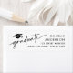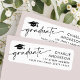 Returetiketter som innehåller en studentmössa och texten "student" i ett handskrivet stil-teckensnitt. Till högerna finns mallen fält för ditt namn och adress.