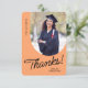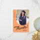 Ett tackkort från student som innehåller ett lodrät foto med ett bågat kant. Anpassa denna ljusa orange och svarta kort med ditt eget tacksamhets- eller använda som det som visas.